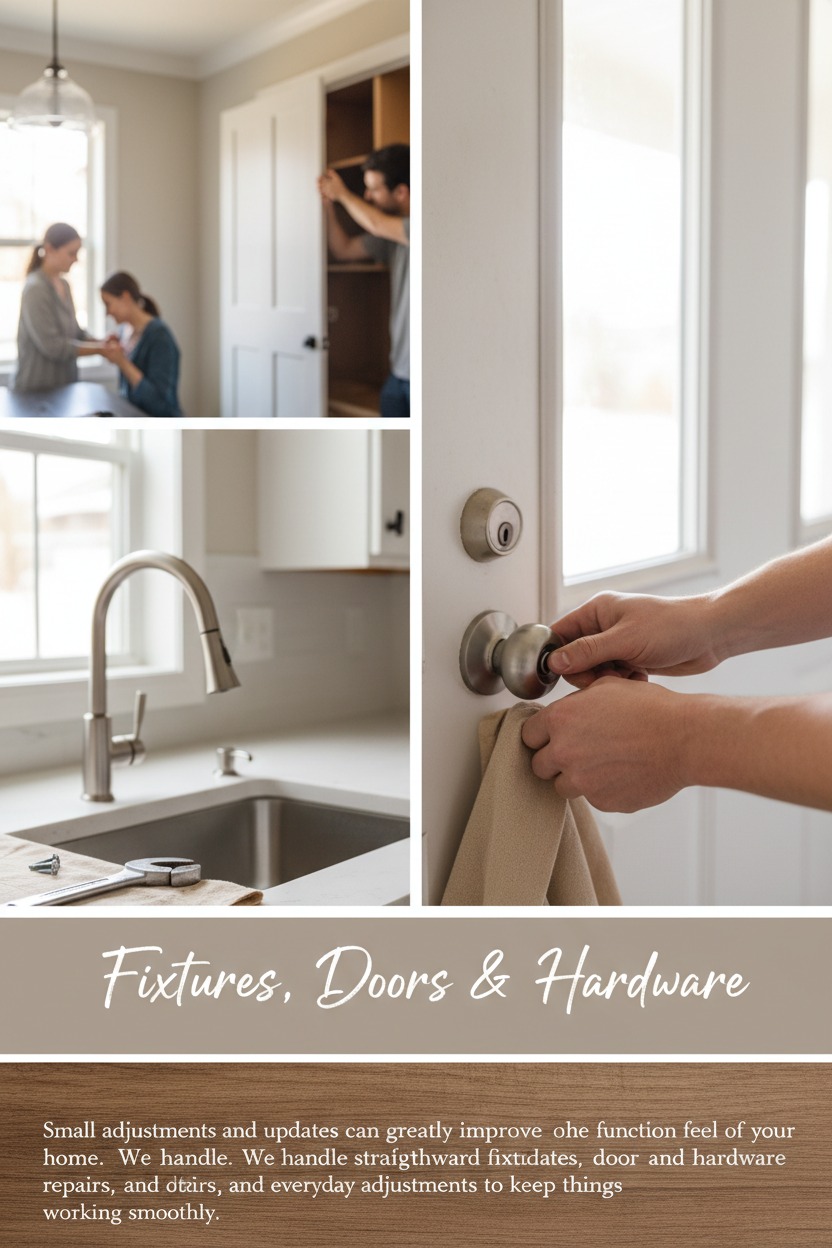 Small adjustments and updates can greatly improve the function and feel of your home. We handle straightforward fixture updates, door and hardware repairs, and everyday adjustments to keep things working smoothly.